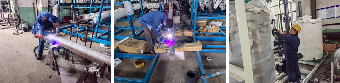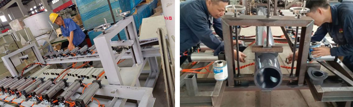 為了提高生產(chǎn)效率及保證產(chǎn)品質(zhì)量,公司設(shè)計開發(fā)了生產(chǎn)輔助設(shè)備,成功制作了一臺半自動化工裝設(shè)備---膜管組件的組裝黏連機(jī),效率提高3到4倍,質(zhì)量明顯改變,生產(chǎn)員工勞動強(qiáng)度大大改善,為此我們點個贊。