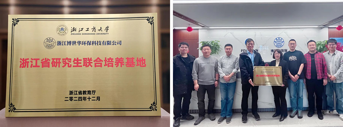 近日,浙江博世華環(huán)保科技有限公司被浙江省教育廳授予“浙江省研究生聯(lián)合培養(yǎng)基地”稱號。授牌儀式在浙江工商大學(xué)環(huán)境學(xué)院院長汪美貞以及周玉央、陳再明兩位老師見證下舉行。